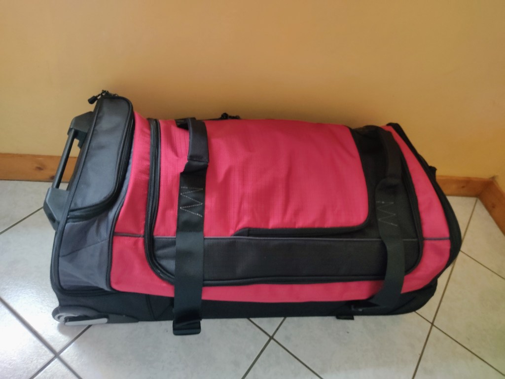 PS : pensez a remplir la poche du bas pour que la valise tiennent sur les roues, nous avons mis les serviettes de bains et nickel .