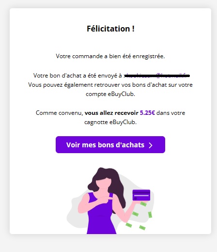 Bonus : Tu peux cumuler les codes promos disponibles sur Ebuyclub avec le pourcentage de cashback proposé.