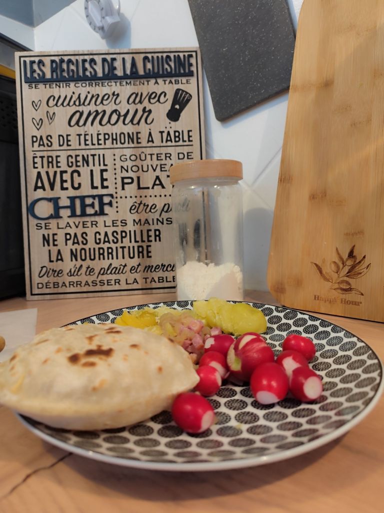3. Cuisson : Fais chauffer une poĂȘle Ă sec. DĂ©pose une pita et fais-la cuire 1 Ă 2 minutes de chaque cĂŽtĂ©, jusquâĂ ce quâelle fasse des taches dorĂ©es. Et voilĂ !
