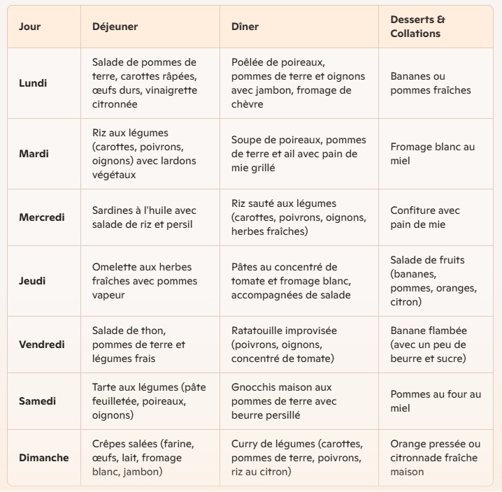 Prêt(e) à relever le défi d’un budget mini pour une semaine équilibrée ? Testez ce plan et partagez vos impressions !